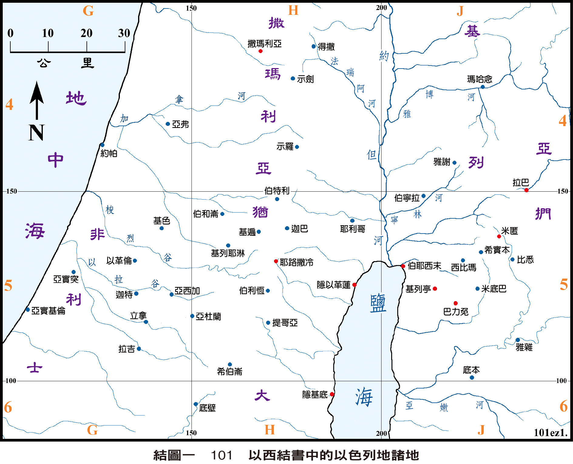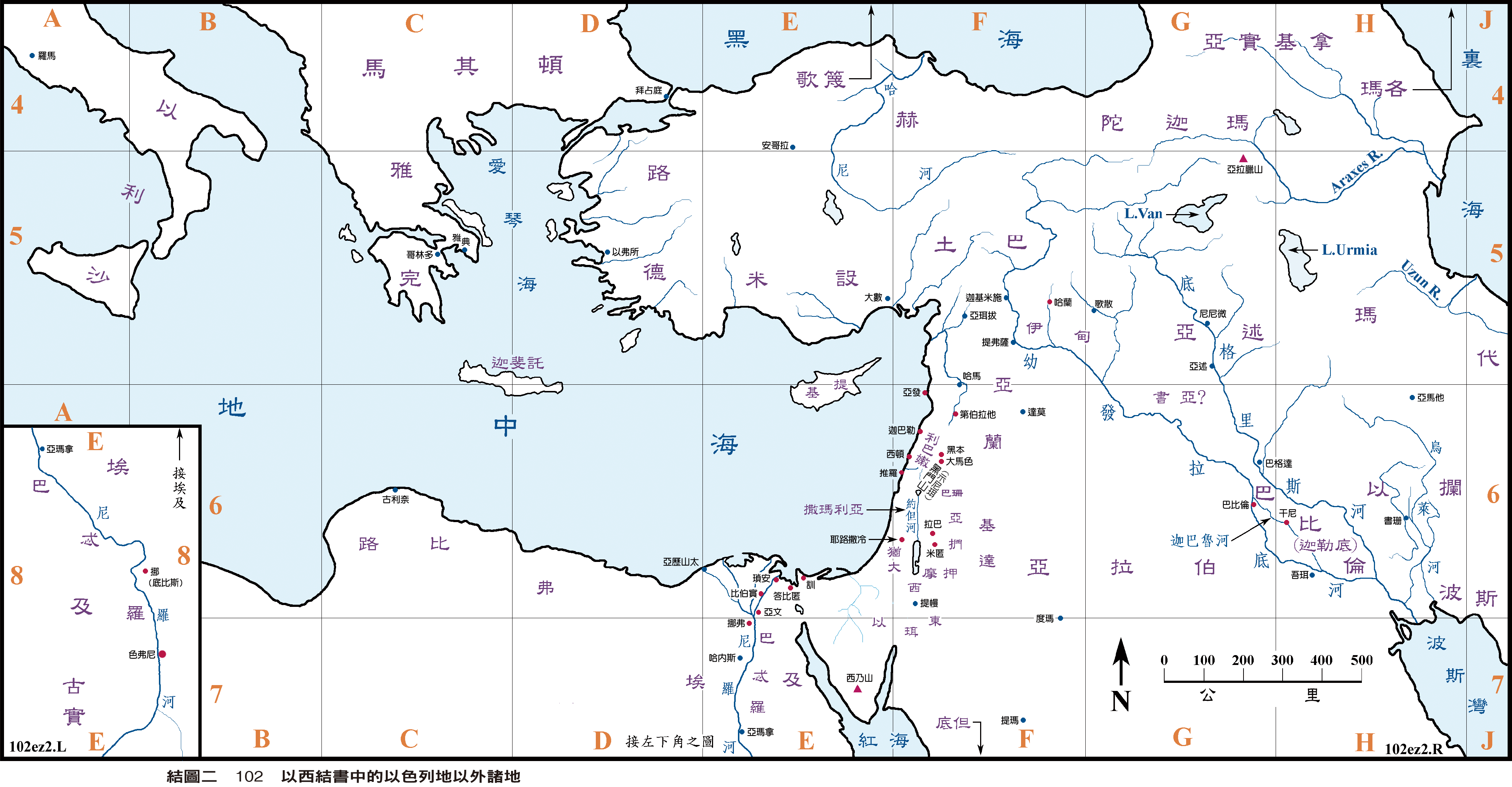 以西結書述及的以色列地,繪示於結圖一 $101;以色列以外之地,則繪示於結圖二 $102。