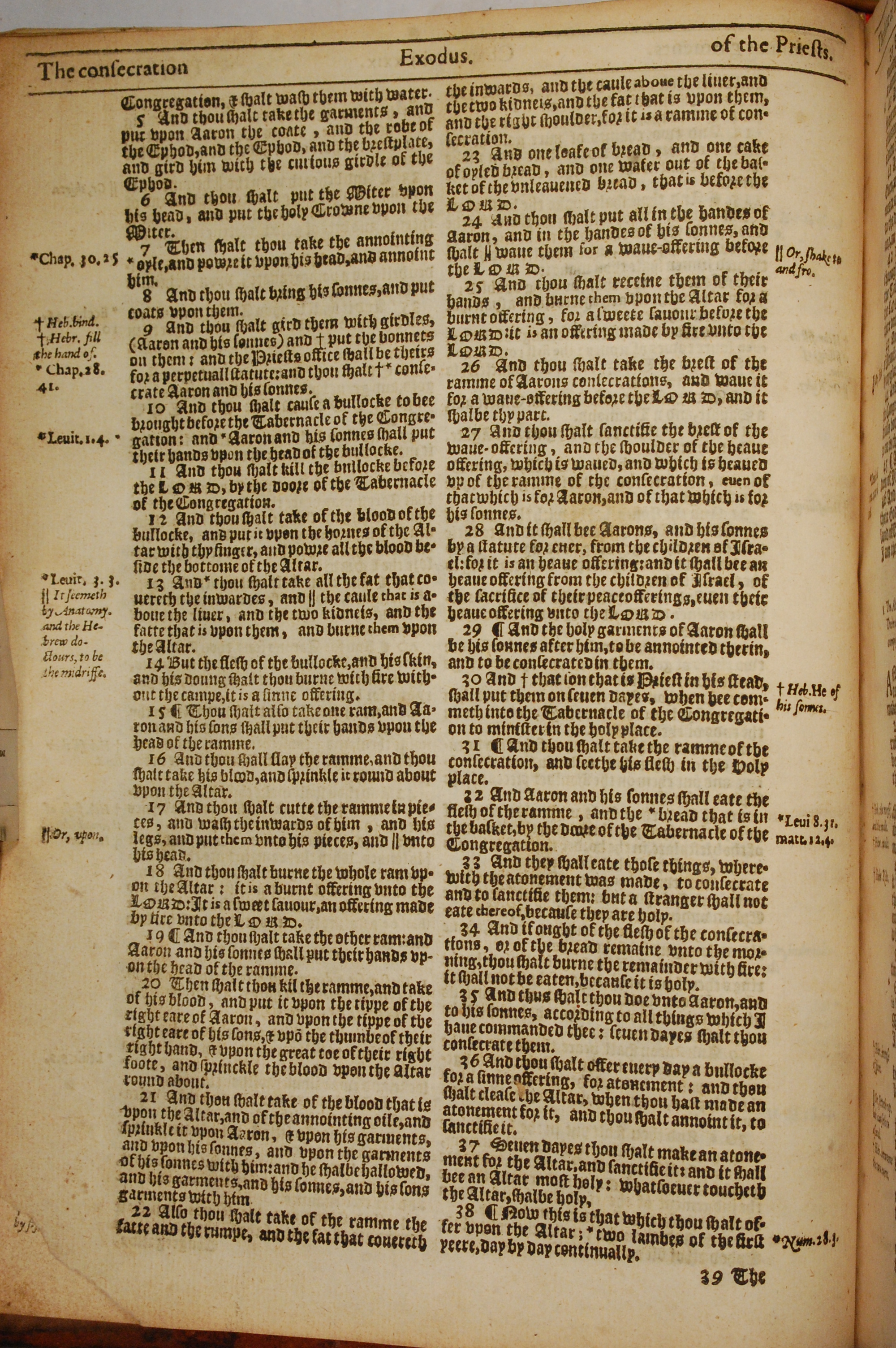 1613年The Genealogies recorded in the sacred scriptures 出埃及记 29 章 5 节到 29 章 38 节