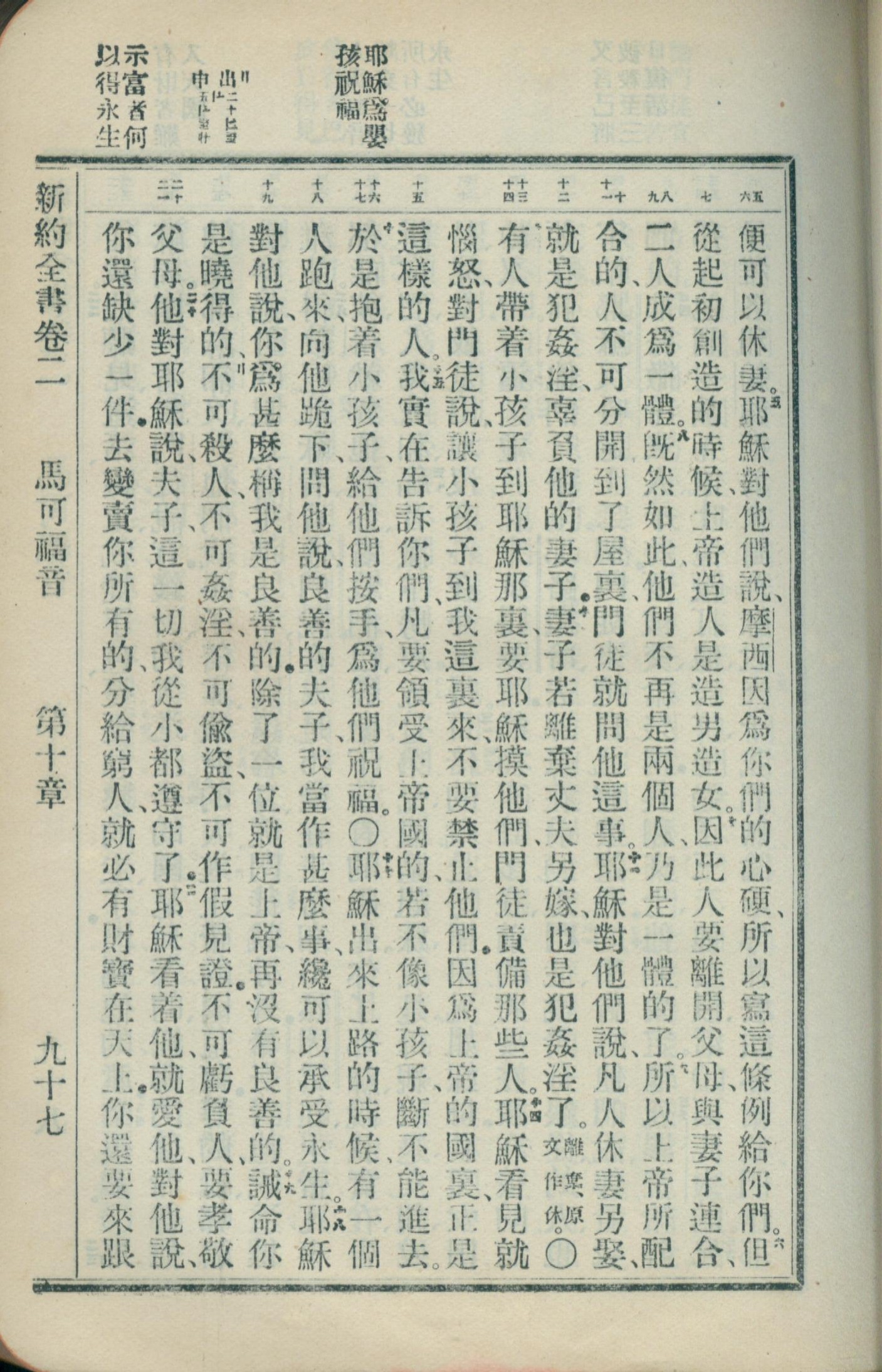 1908年新约全书(官话和合本) 马可福音 10 章 5 节到 10 章 21 节