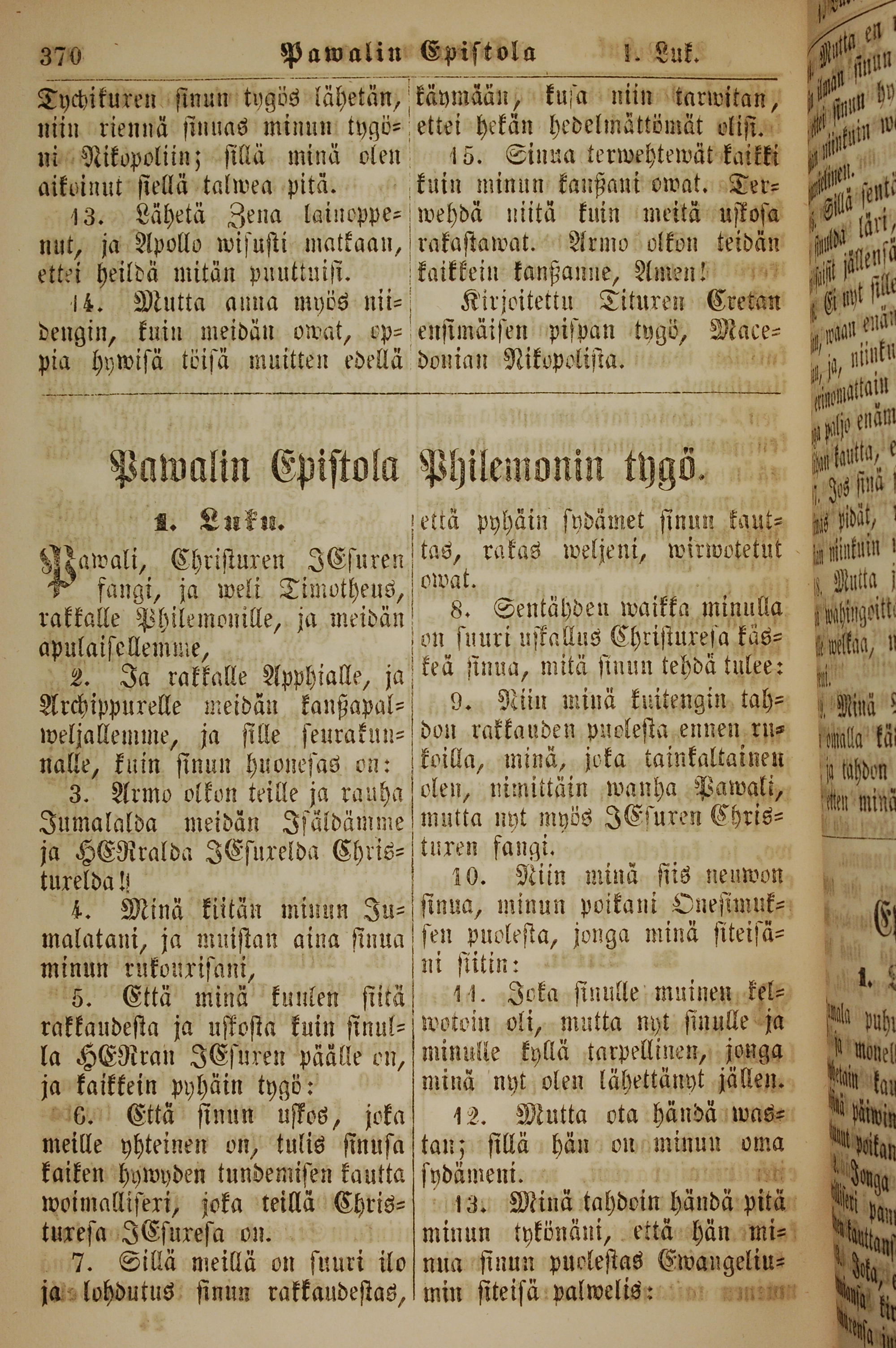 1861年新约全书 腓利门书 1 章 1 节到 1 章 13 节