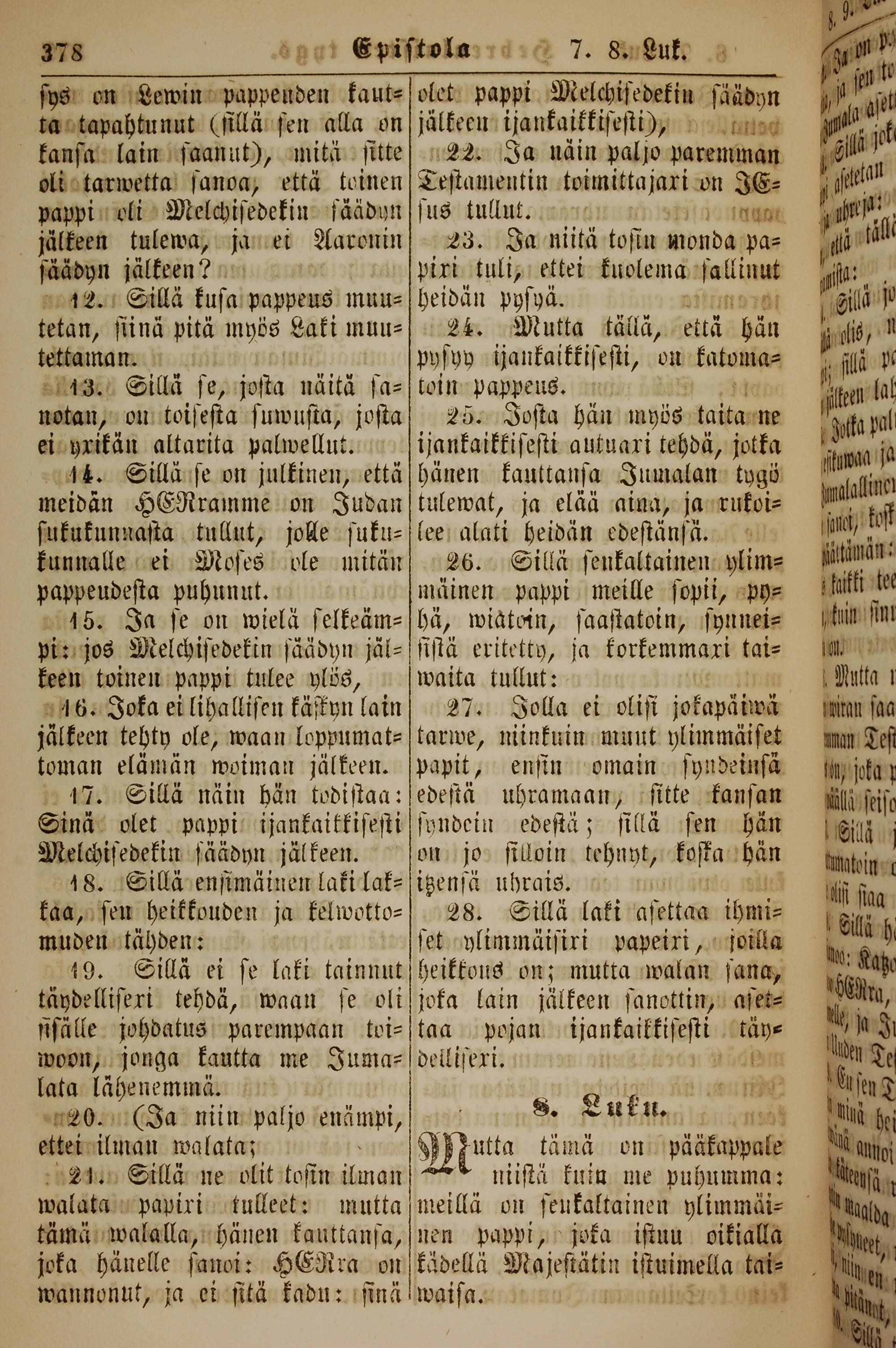 1861年新约全书 希伯来书 7 章 12 节到 8 章 1 节