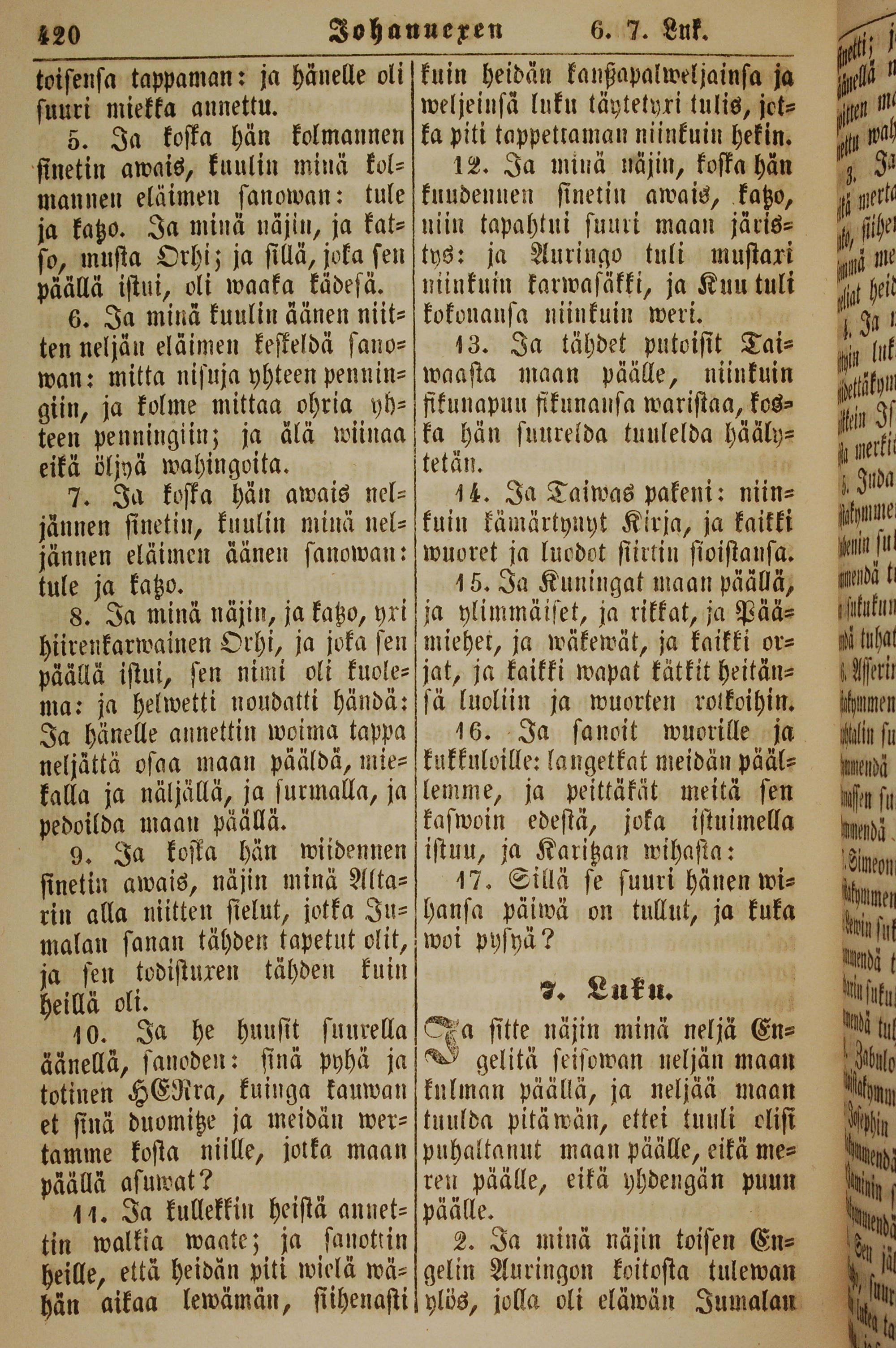 1861年新约全书 启示录 6 章 5 节到 7 章 2 节