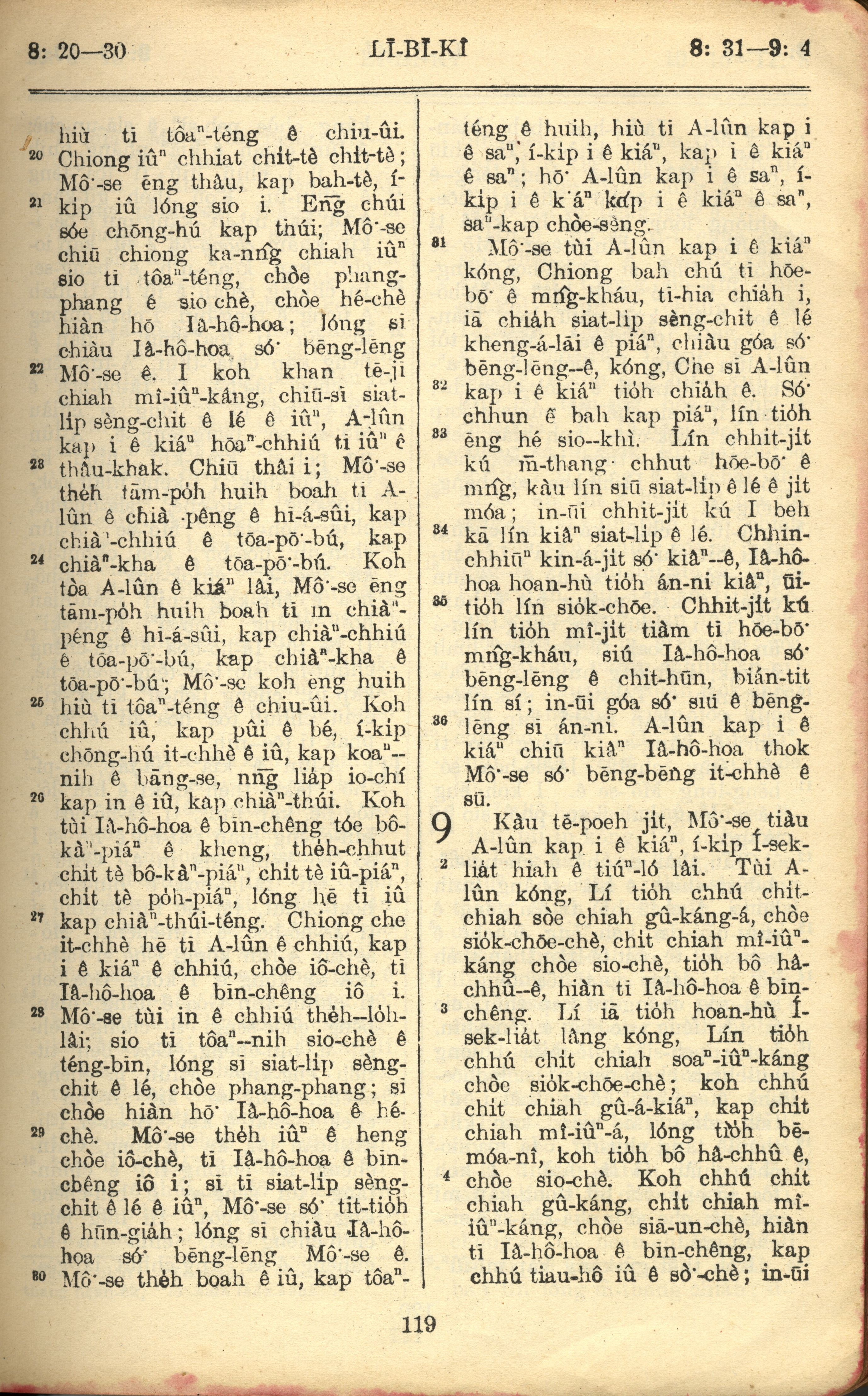1957年巴克礼全罗台语圣经串珠版 利未记 8 章 20 节到 9 章 4 节