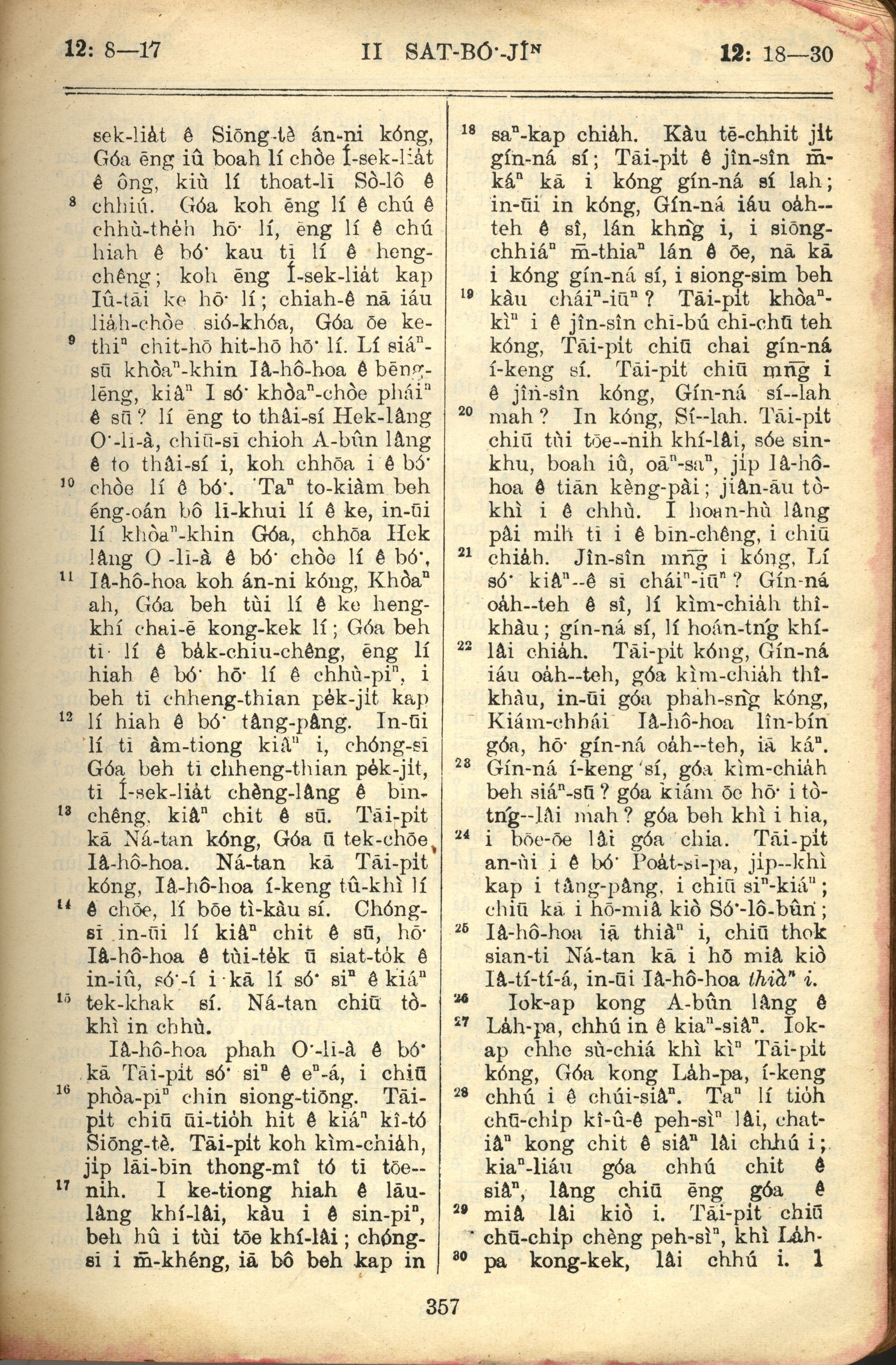 1957年巴克礼全罗台语圣经串珠版 撒母耳记下 12 章 8 节到 12 章 30 节