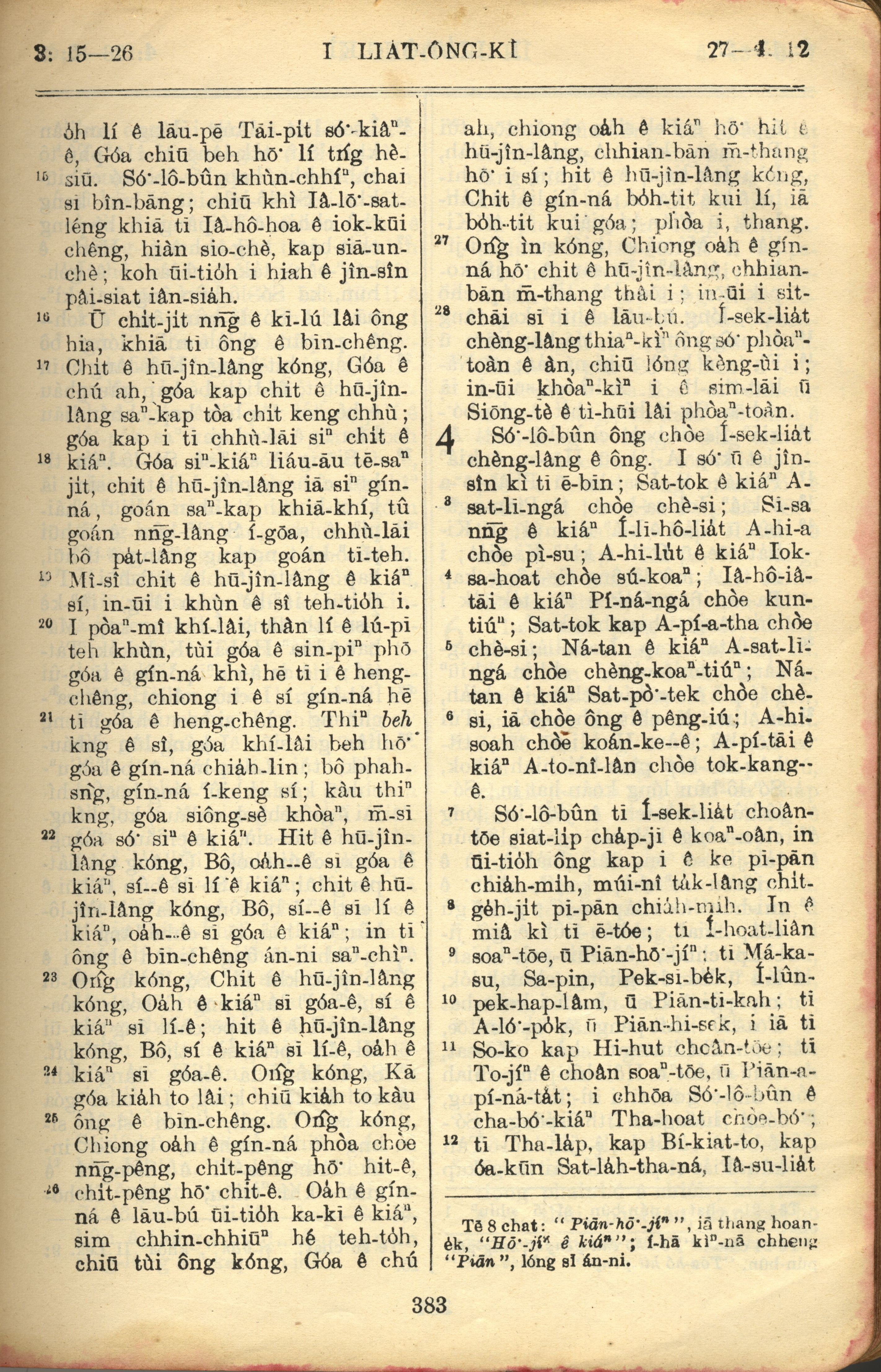 1957年巴克礼全罗台语圣经串珠版 列王纪上 3 章 15 节到 4 章 12 节