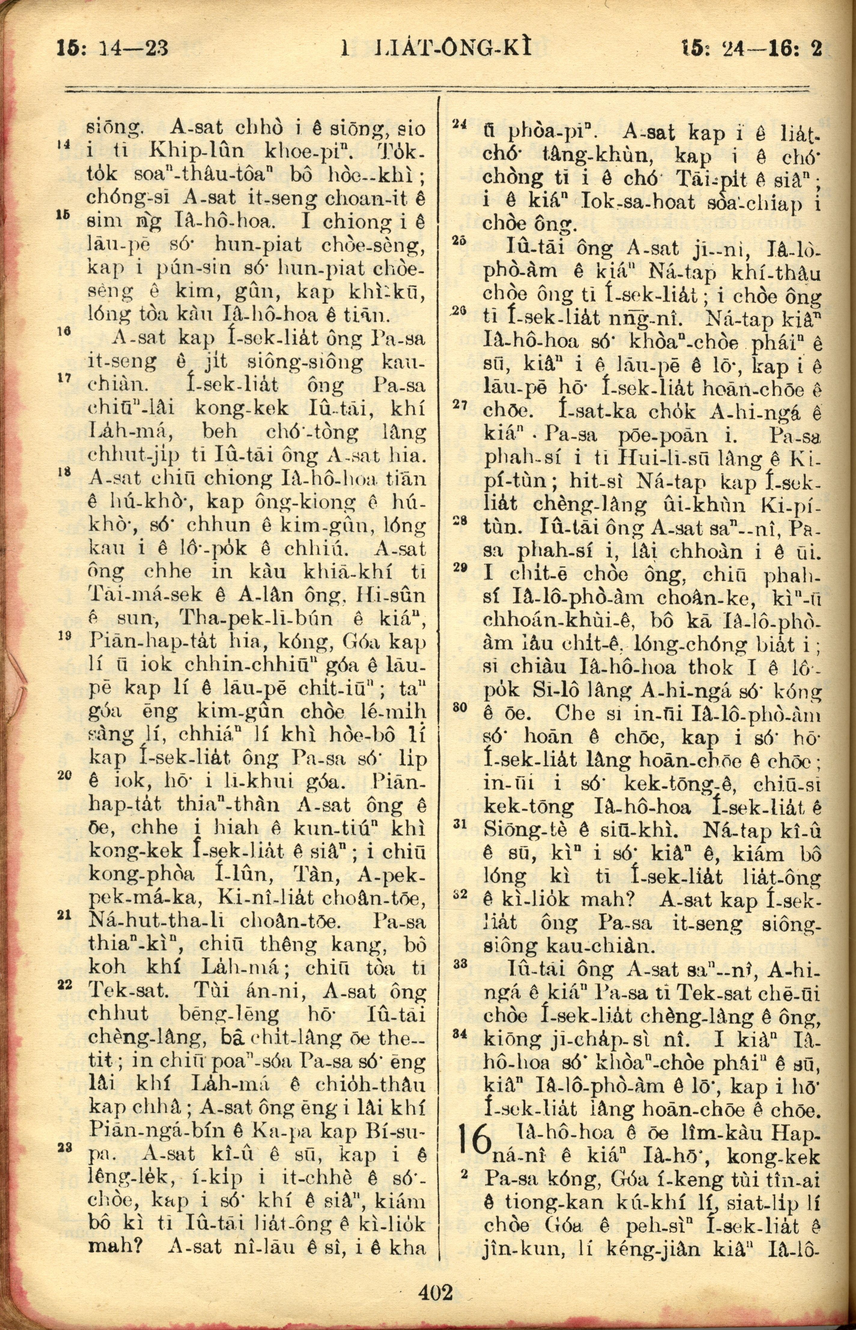 1957年巴克礼全罗台语圣经串珠版 列王纪上 15 章 14 节到 16 章 2 节