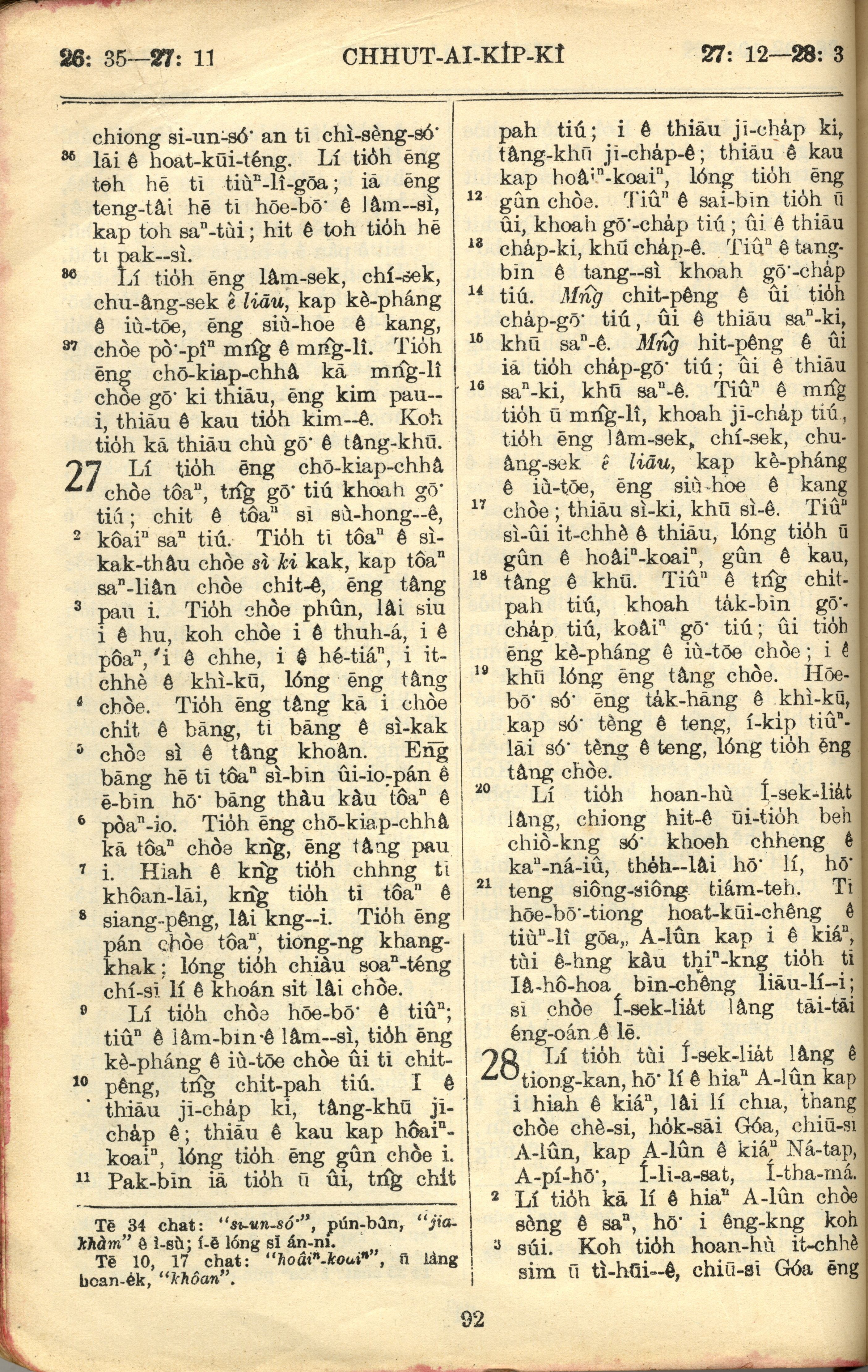 1957年巴克礼全罗台语圣经串珠版 出埃及记 26 章 35 节到 28 章 3 节