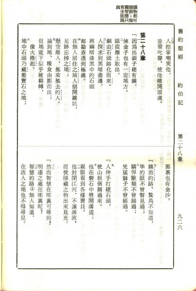 1970年新旧约全书(吕振中译本) 约伯记 27 章 23 节到 28 章 13 节