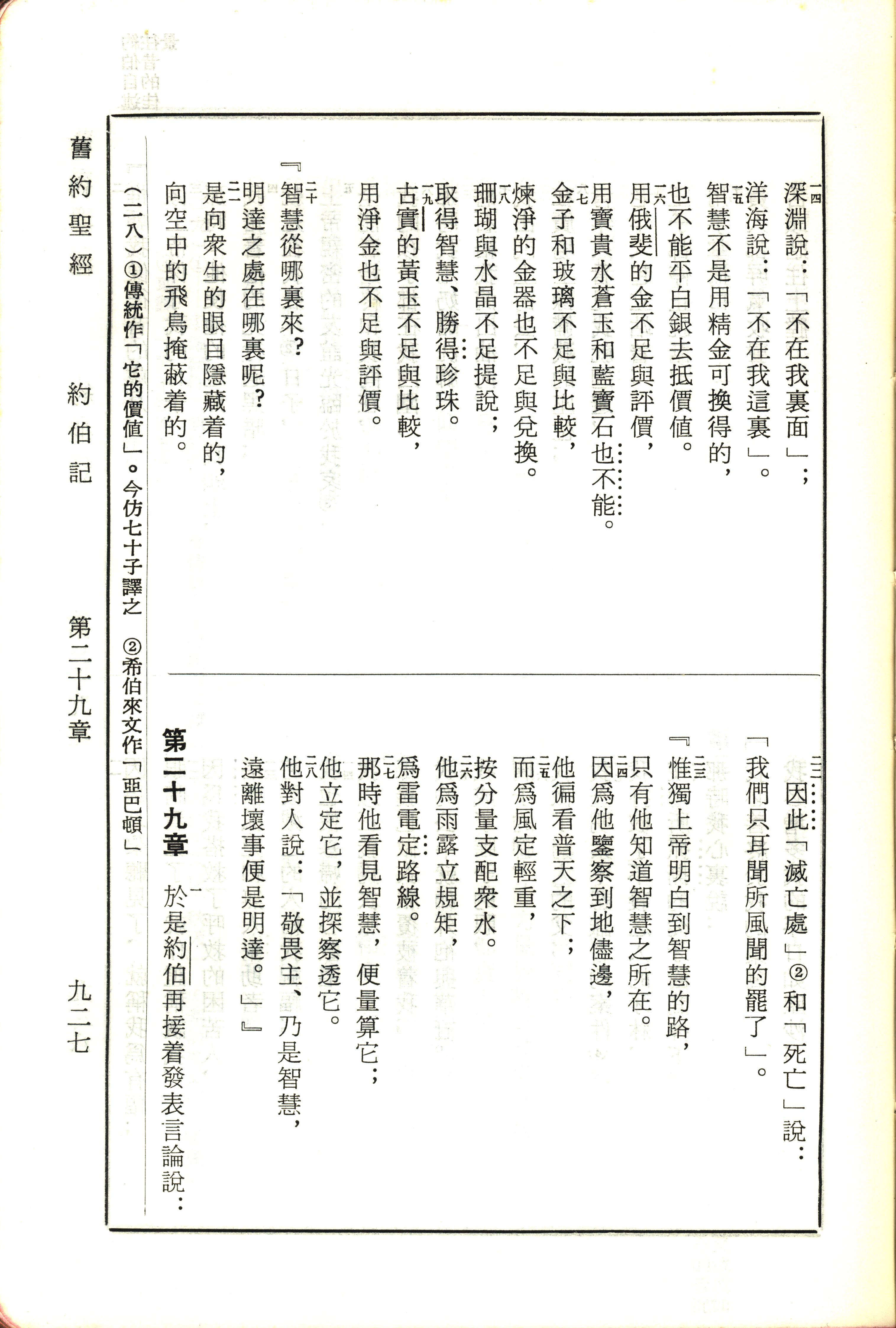 1970年新旧约全书(吕振中译本) 约伯记 28 章 14 节到 29 章 1 节