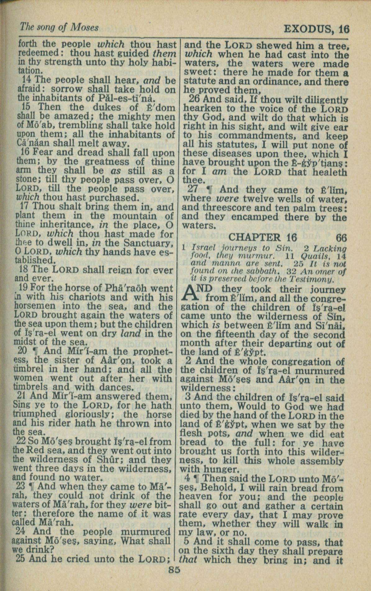 1946年King James Version 出埃及記 15 章 14 節到 16 章 5 節