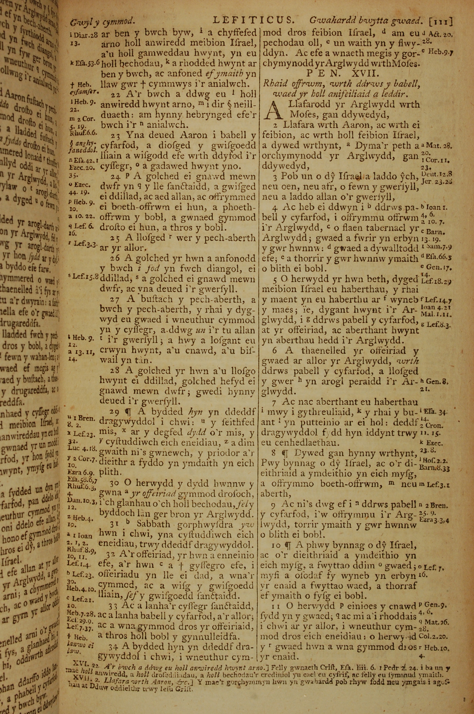1796年威爾斯文新舊約全書 利未記 16 章 22 節到 17 章 11 節