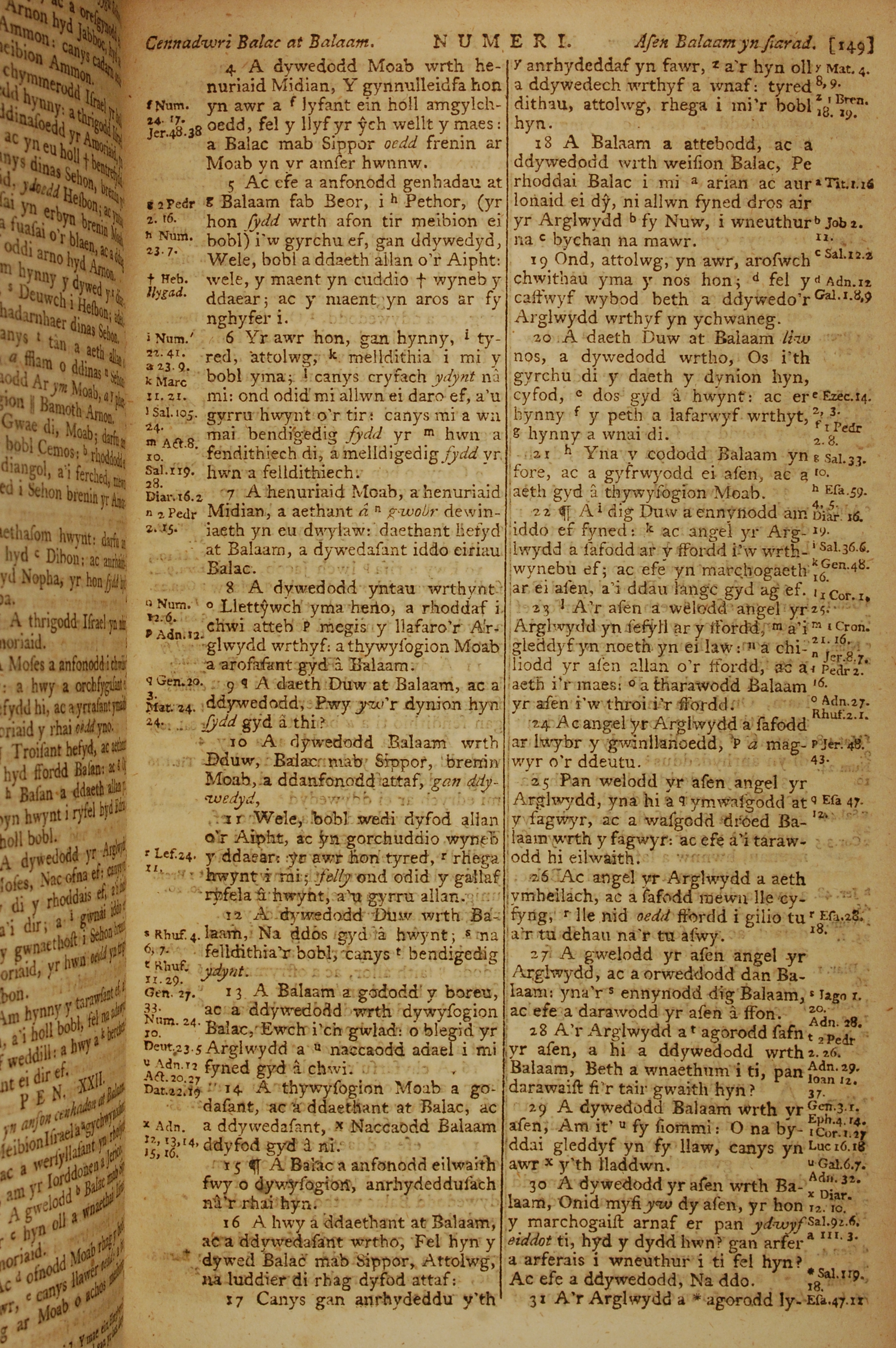1796年威爾斯文新舊約全書 民數記 22 章 4 節到 22 章 31 節