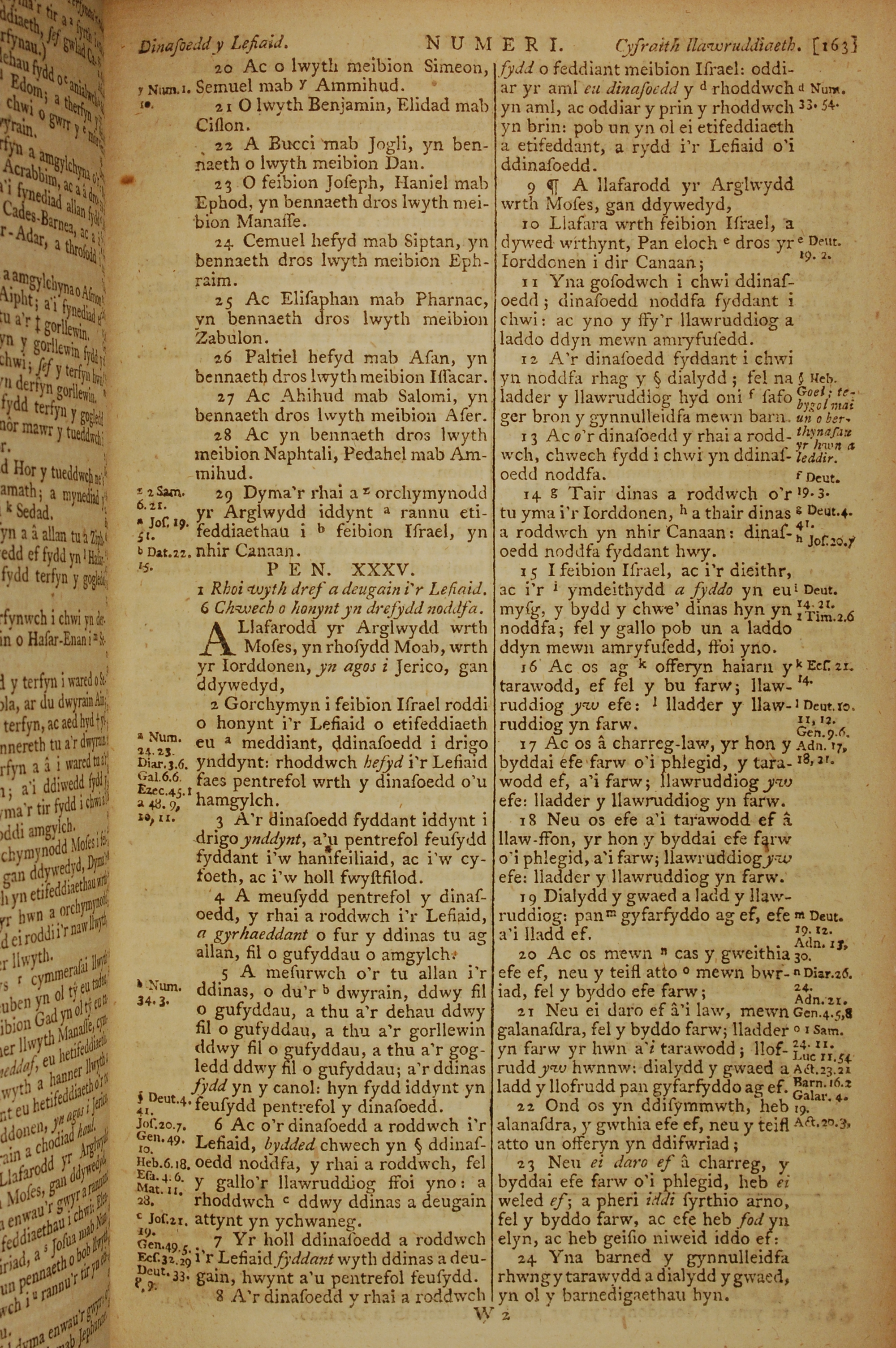1796年威爾斯文新舊約全書 民數記 34 章 20 節到 35 章 24 節