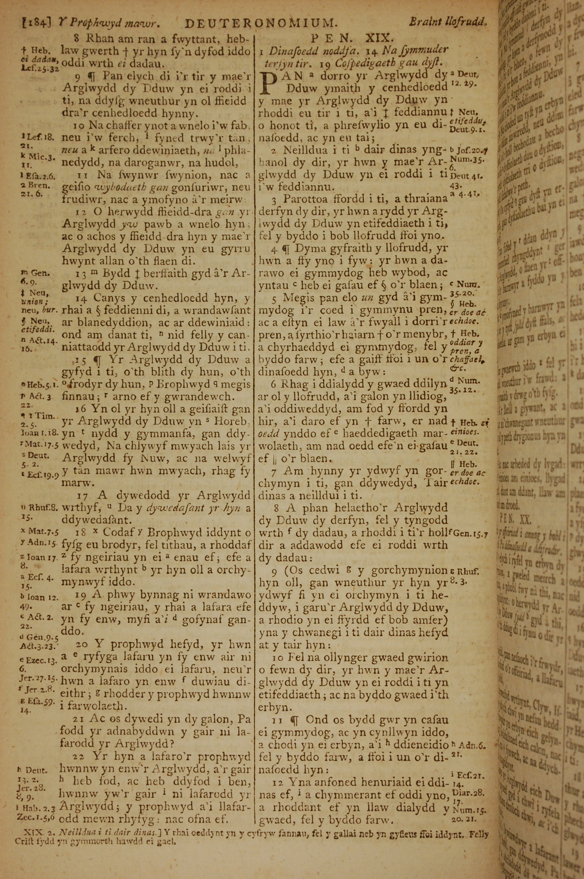 1796年威爾斯文新舊約全書 申命記 18 章 8 節到 19 章 12 節