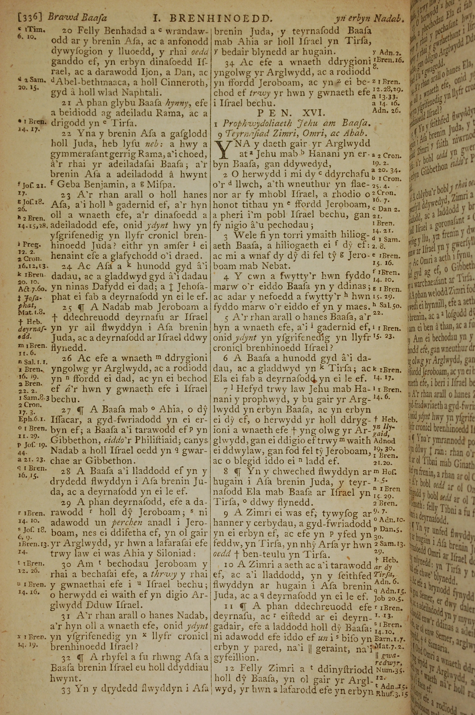 1796年威爾斯文新舊約全書 列王紀上 15 章 20 節到 16 章 12 節