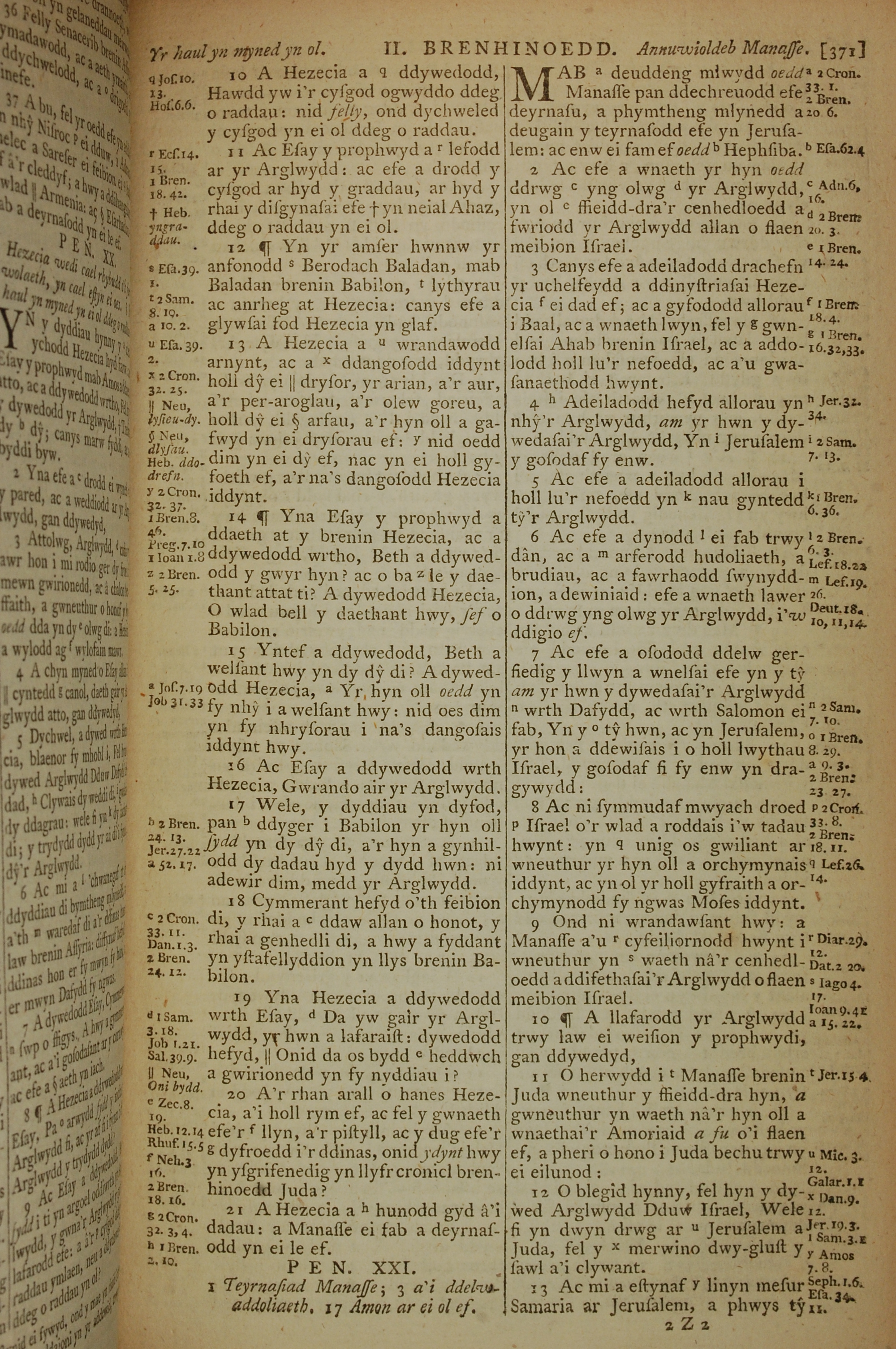 1796年威爾斯文新舊約全書 列王紀下 20 章 10 節到 21 章 13 節