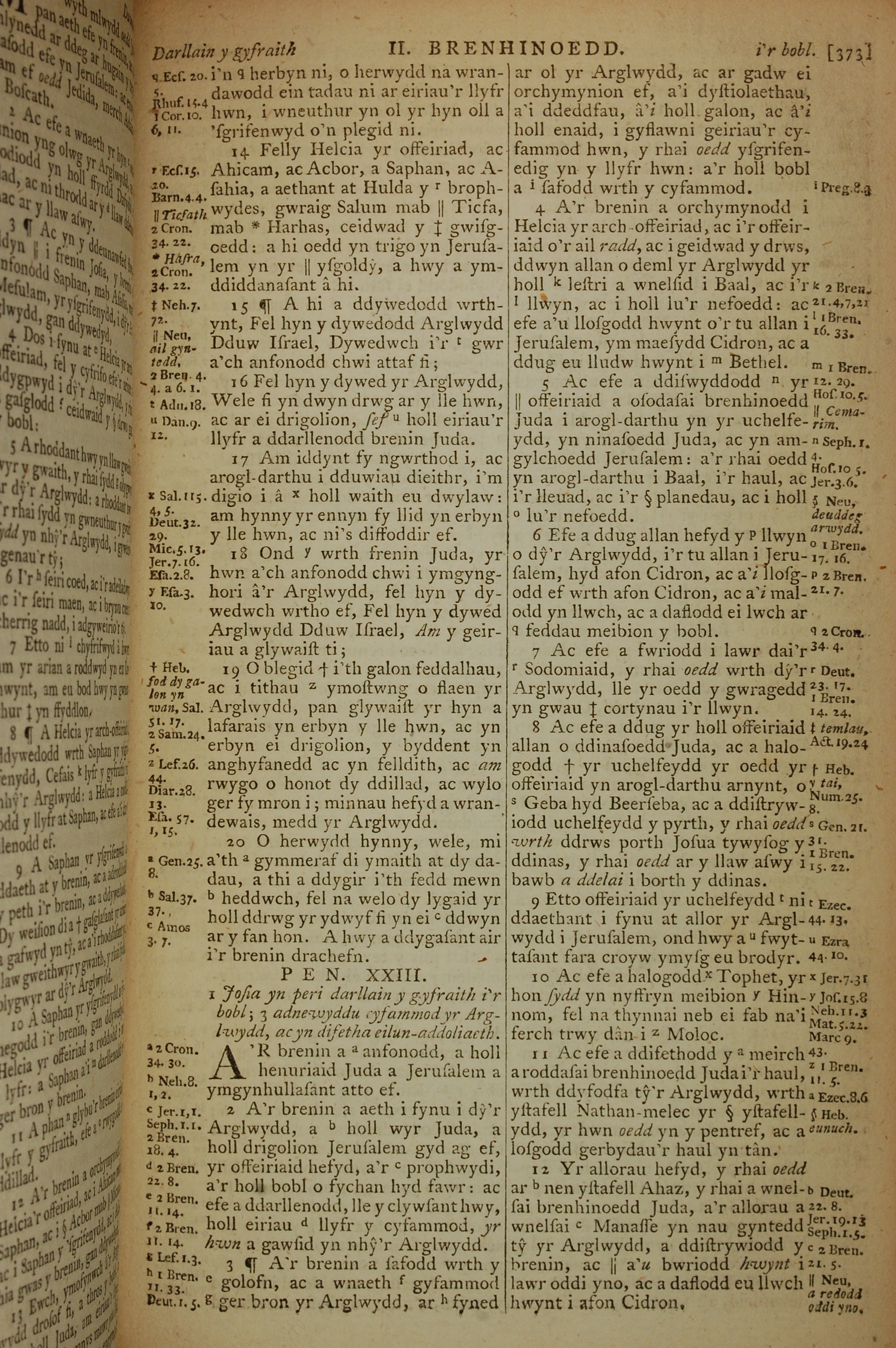 1796年威爾斯文新舊約全書 列王紀下 22 章 14 節到 23 章 12 節
