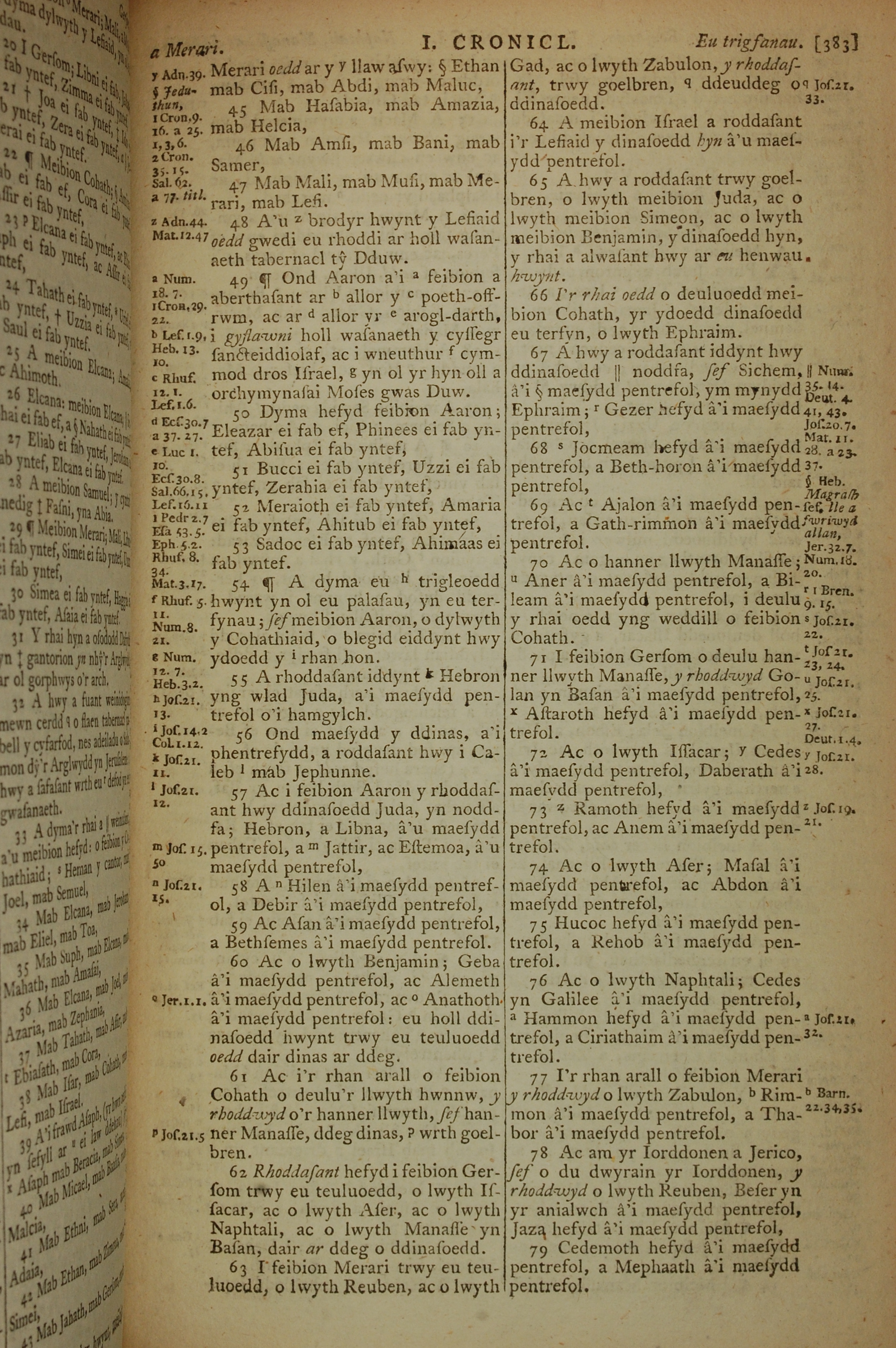 1796年威爾斯文新舊約全書 歷代志上 6 章 45 節到 6 章 79 節