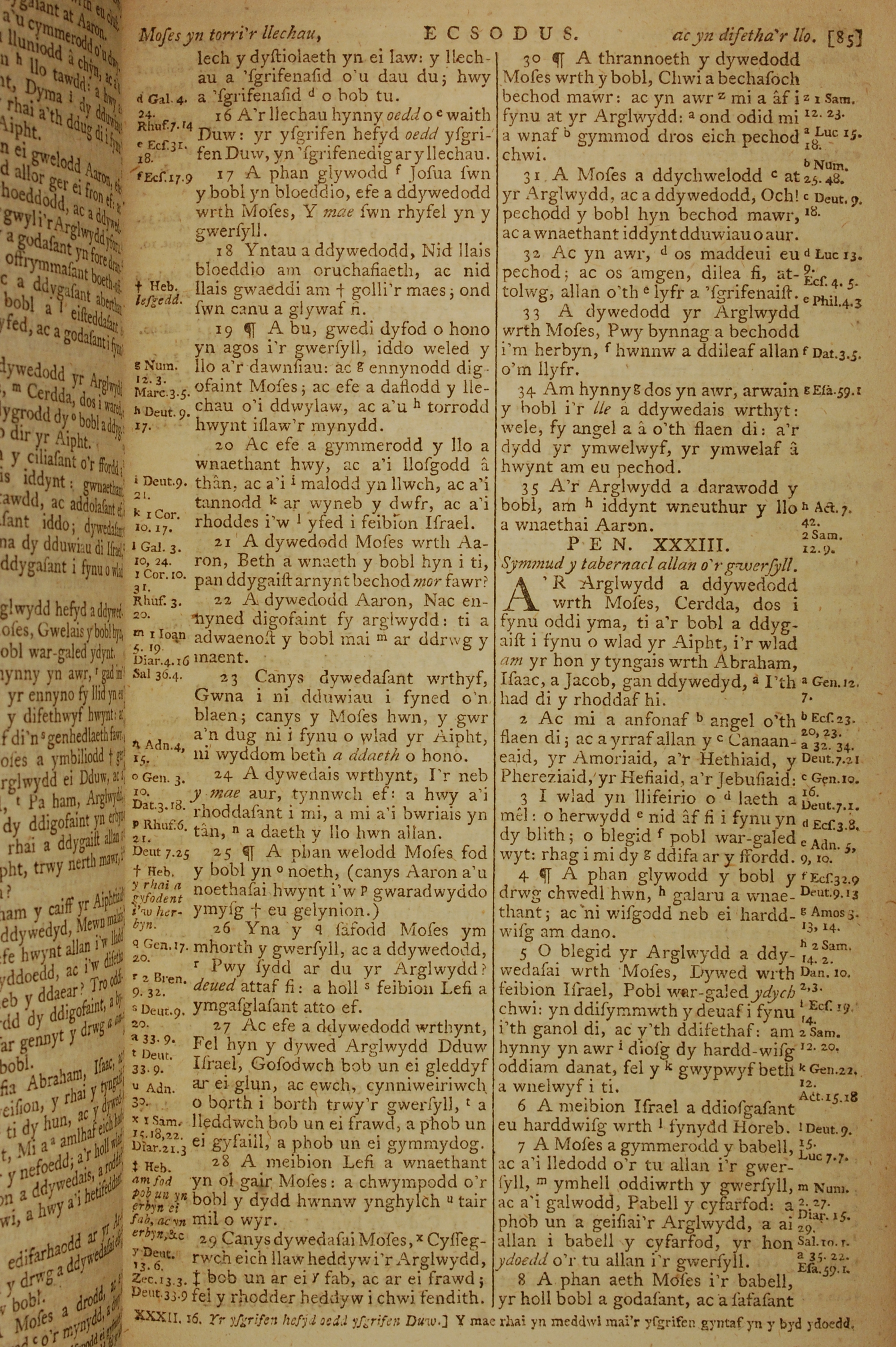 1796年威爾斯文新舊約全書 出埃及記 32 章 16 節到 33 章 8 節